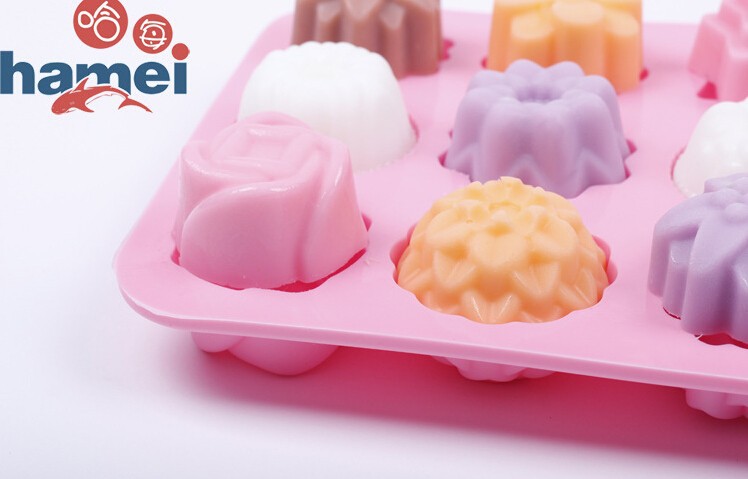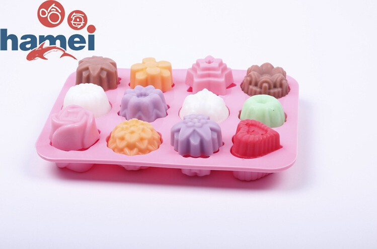 12 Hole Flowers Shape Food Grade Silicone Cake Mold, Jelly, Chocolate, DIY Fondant Cake Decorating