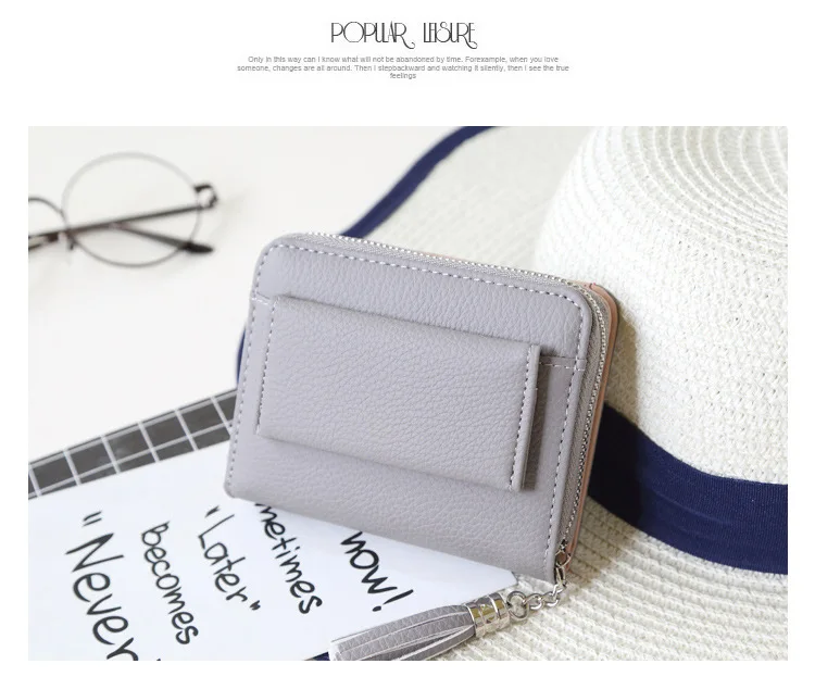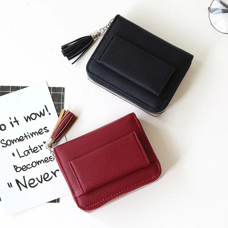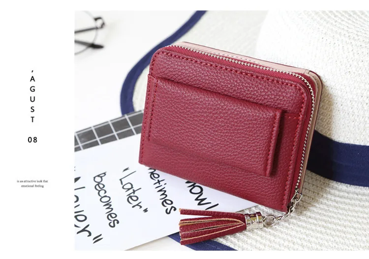 Interior:Zipper Poucht,Coin Pocket,Card Holder,Note Compartment,Photo Holder