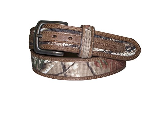 Product DescriptionYouth john deere 32mm real-tree fabric center/crazy horse tan leather edges bkle tab/doeb buckle/pt end w/jd name0