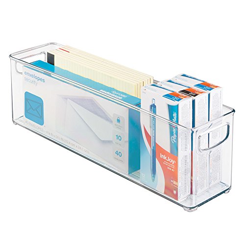 mDesign Office Supplies Desk Cabinet Organizer Bin for Pens, Pencils, Markers, Highlighters, Tape - Small, Clear