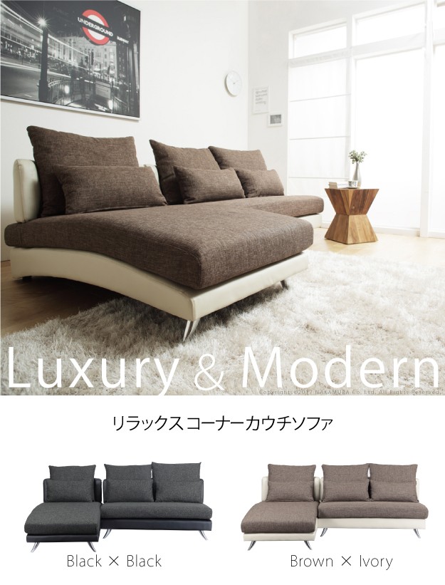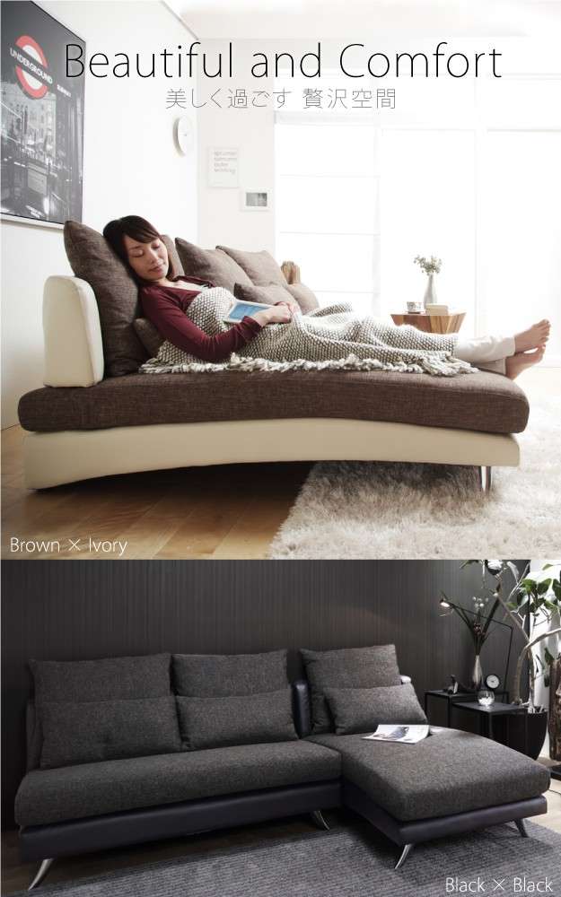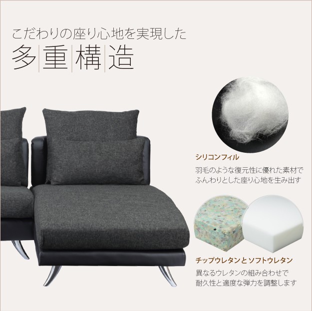 ●モダン デザイン ファブリック 合皮 カウチソファ ソファ L字 3人掛