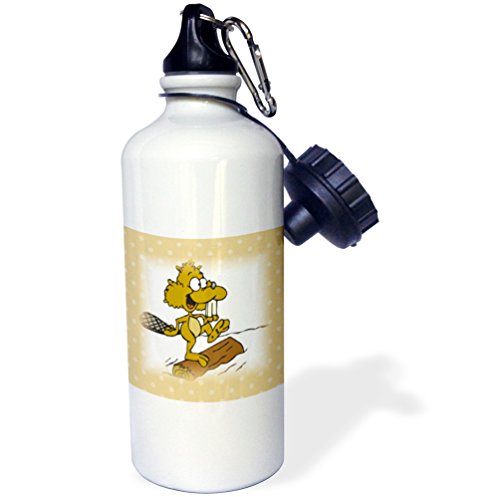 3dRose wb_205122_1 Print of Beaver on Log on Beige Dots Sports Water Bottle, 21 oz, White