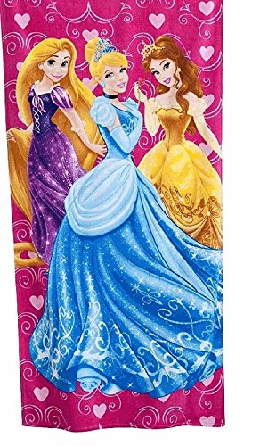 Studio : Disney Publisher : Disney Product Description Disney Princess Hearts Glamor Beach Towel features Princesses Cinderella, Belle, and Rapunzel. The pink towel features an allover pink heart design. The towel is 100 percent cotton. Machine wash. Lightweight. Measures 28 x 58 inches 0