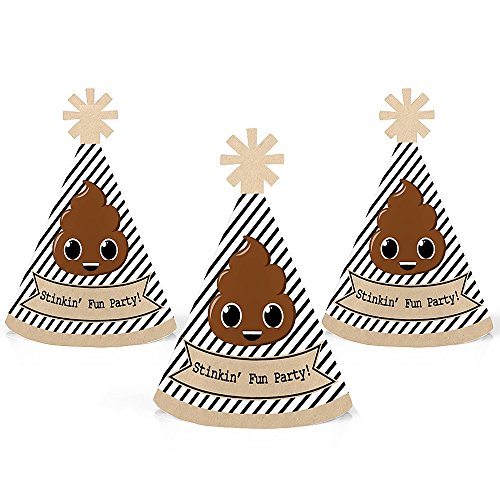 -. Feature : Poop Emoji Mini Party Hats INCLUDES 10 Party 'Til You're Pooped party hats with elastic chin straps. Mini birthday party hats will fit both children and adults. / 10 Party 'Til You're Pooped party hats SIZE 4.5 inches tall and 3 inches in diameter at the base. The included elastic chin straps measure 12 inches long. These cute poop emoji party accessories feature a unique star cut-out decoration at the top and the P.R.Inted saying "Stinkin' Fun Party!". / FUN POOP EMOJI PARTY ACCESSORIES: Party 'Til You're Pooped mini party hats are perfect for your poop party. This set of cute tiny party hats will help you take adorable birthday photos. Best of all, mini party hats are perfectly sized for adults, kids, and even pets, so everyone can get in on the photo fun. Little party hats are sure to be enjoyed by all your friends and family! / PREMIUM MINI PARTY HATS: Set of 10 Party 'Til You're Pooped mini party hats are professionally P.R.Inted on heavy-duty card stock paper with a photo-like shine. They are individually inspected, then carefully packaged. Poop Emoji mini cone birthday party hats will arrive flat, with the chin straps attached. Easy assembly is required. Simply roll the party hat into a cone shape and slide the tab into the slot to secure. / MADE IN THE USA: Party 'Til You're Pooped - Mini Cone Poop Emoji Party Hats are designed and manufactured at our Wisconsin facility using materials that are Made in the USA.