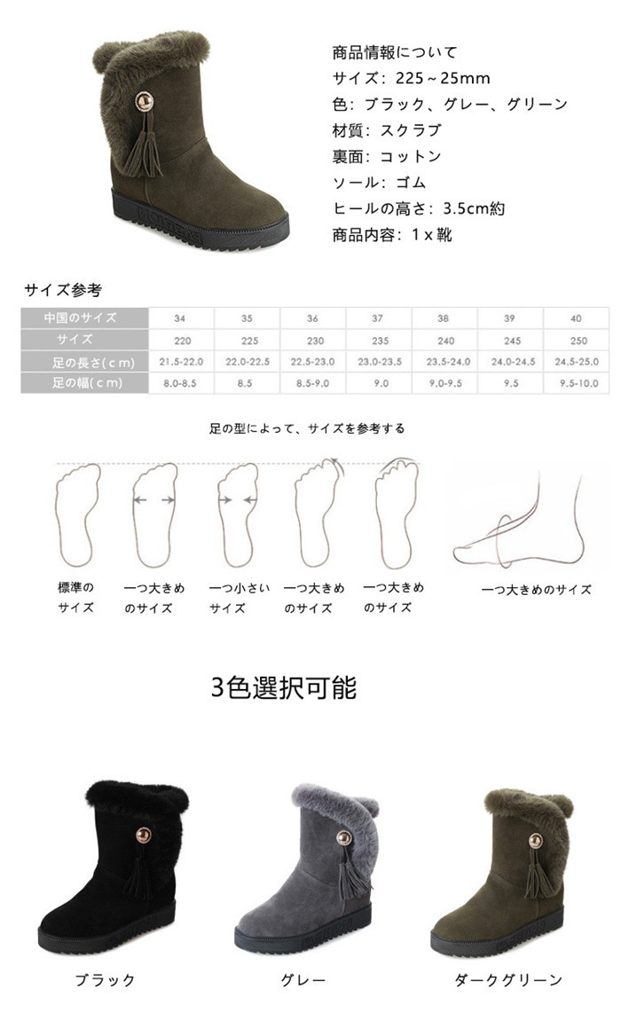 サイズ:225~25mm色:ブラック、グレー、グリーン材質:スクラブ裏面:コットンソール:ゴムヒールの高さ:3.5cm約商品内容:1x靴足の長さ:写真のように寒い冬に一足だけで、暖かいです。ムートンブーツ レディース 靴 大きいサイズ ローヒール やわらか あったか 冷え性 保温 防寒 雪 滑らない 疲れにくい 家族