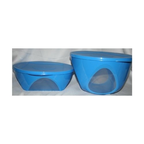Tupperware Clear Impressions Clear view Through Serving Salad 2pc Bowl Set Blue