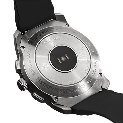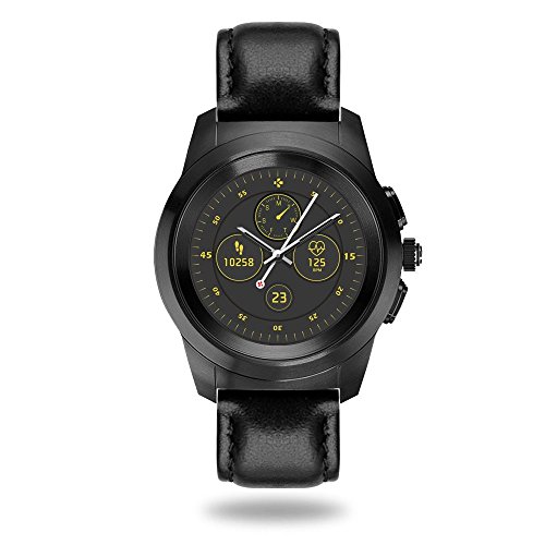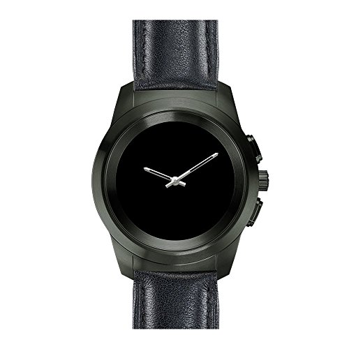 MyKronoz ZeTime Premium Hybrid Smartwatch 39mm with mechanical hands over a color touch screen – Brushed Black/Black Embossed Leather (Certified Refurbished)