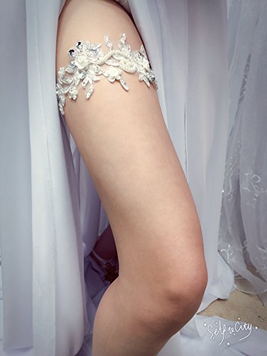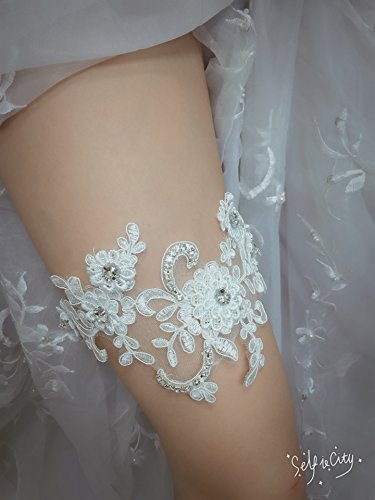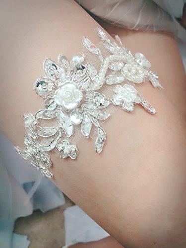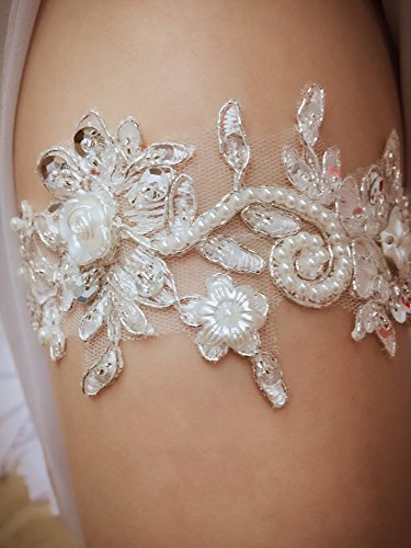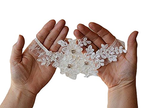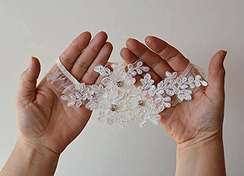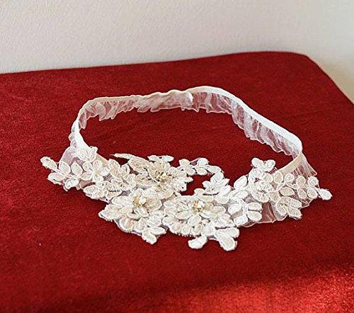 ASA Bridal Design Handmade Lace Wedding Garter (Applique ivory)