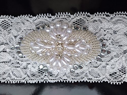 ASA Bridal Design Handmade Lace Wedding Garter-Applique white