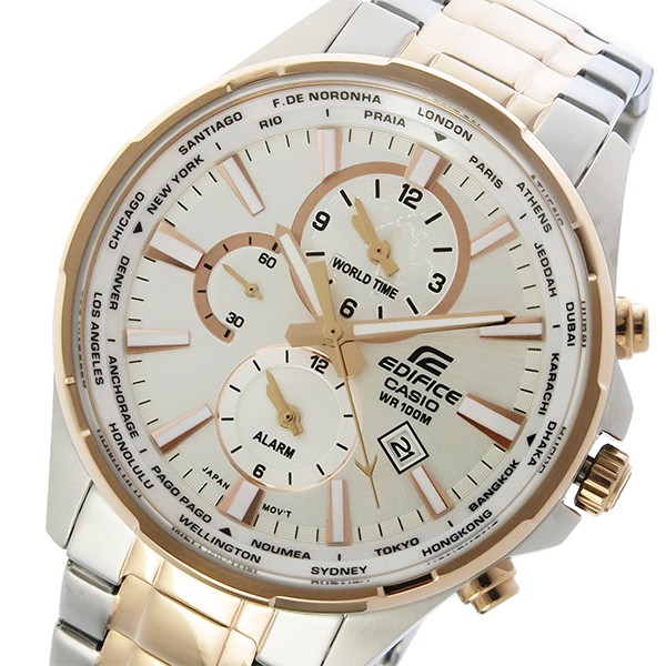 クオーツ、10気圧防水、ワールドタイム、アラーム、スモールセコンド、カラー:シルバー(文字盤)、シルバー/ピンクゴールド(ベルト)