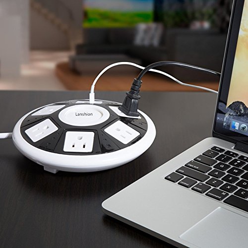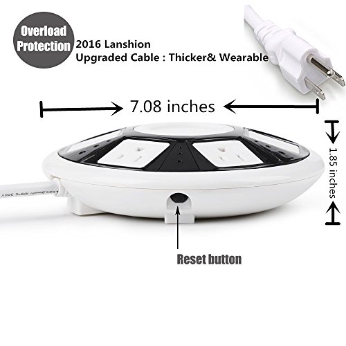 Safe and Convenient: The UFO shape extension socket would auto-stop working when it over the rated power 2500w, then please push the overload protection button on when you restart use; All Sockets/USB ports are grounded & provide superior protection from damaging voltage fluctuations