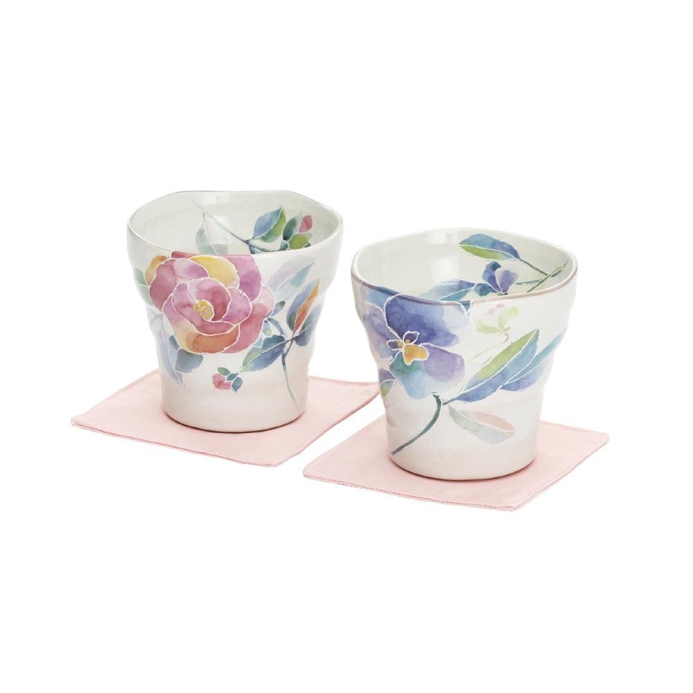 | 淡い花柄が上品なペアロックカップです。大切な方へのギフトにも最適です。 |