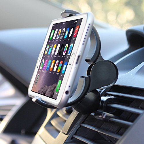 - Feature : Easy Installation, Just clip on to Air vent and snap in your phone / 360 degree rotation ball head for landscape or portrait view. / Expandable clamp with rubber grip fits devices between 2 and 3.5-inch wide (50-89mm). / Small Compact Design, minimum obstruction to your air vent / And Multifunction FM Bluetooth Handsfree Stereo Transmitter, Wirelessly play music, make hands-free calls and charge your USB device in the car