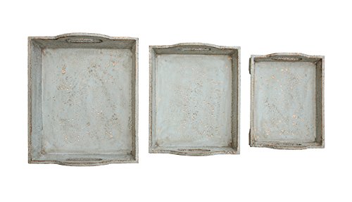 Creative Co-Op DA5225 Distressed Aqua Wood Tray Set