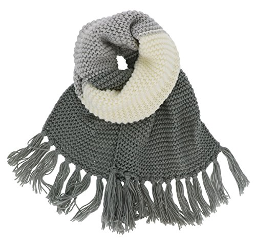 Product Description Three colors adorn this knit scarf, as well as an array of tassels along the edges! Perfect for wrapping in various ways, and with many outfits! Add this accessory scarf to your collection! 0
