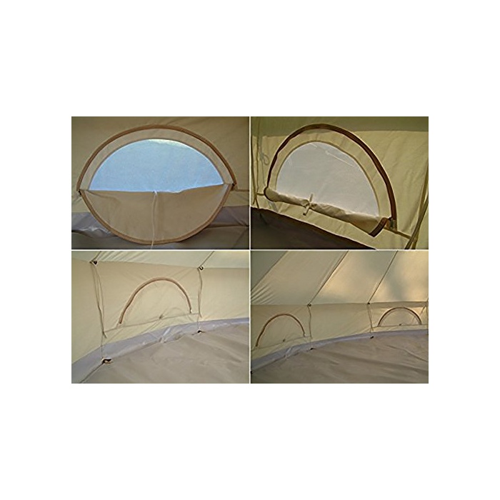 · 4-SEASON TENT:코튼 원단은 겨울이 따뜻하고, 여름이 시원합니다.그리고 여름에는 통풍,겨울에는 스토브 재킷을 세트 한다(벽에 15cm 의 스토브 재킷 를 가지고 있는다)