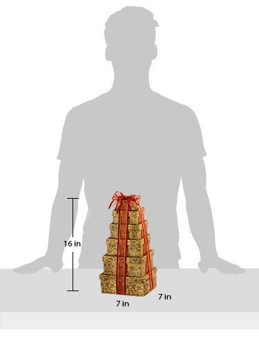-. Feature : Great gift for birthday, thinking of you, or any occasion / Perfect gift basket for family and friends, or as a corporate office gift. / Gift tower includes: Butter toffee peanuts, chocolate chip cookies, caramel apple kisses, almond pecan popcorn, cranberry mix, salted caramel cookies, honey roasted cashews, Cajun mix, and hot cocoas and coffee alongside a duo of biscotti / GIFT TOWER DIMENSIONS: 7" x 7" x 16" high / Kosher Certified OK D. Giving a kosher gift ensures that all recipients can enjoy and partake in your gift.