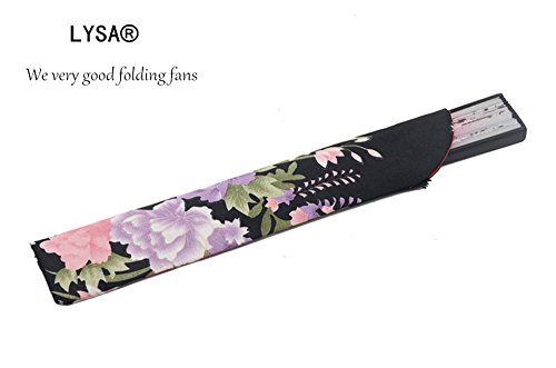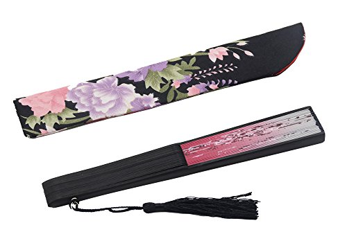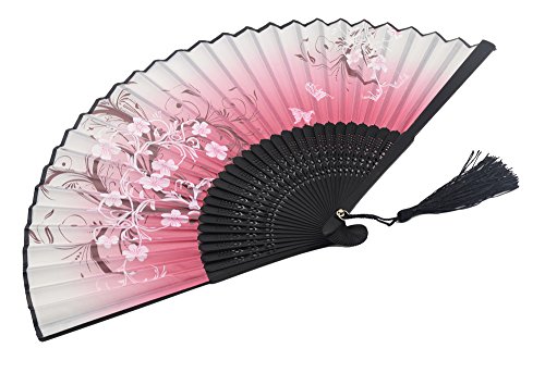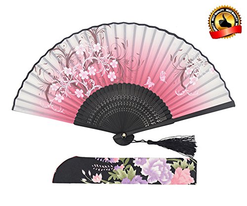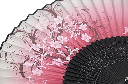 LYSA 8.27" (21cm) Women Hand Held Silk Folding Fan, Silk Tissue Protective Sleeve -- Chinese/Japanese Style (Pink-023)
