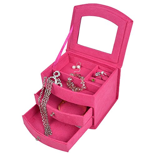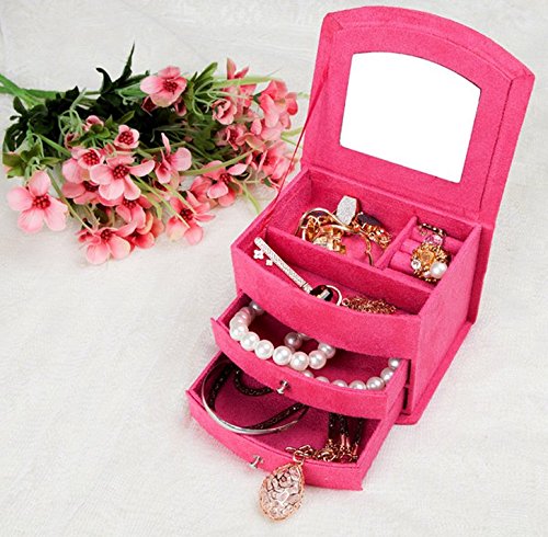 -. Feature : Three-layer and removable drawers design provides more space. / Made of medium density fiberboard and covered with soft lint. / Earrings, rings, brackets, necklaces can be held. / Easy to open ,keep your jewelry and small things in good order. / Dimensions (L x W x H): 6" x 4" x 5", Package include: 1 pc of Jewelry Box.