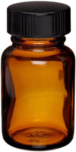 Wheaton Wide Mouth Packer Bottle With Phenolic Poly-Seal Lined Screw Cap, Amber Glass