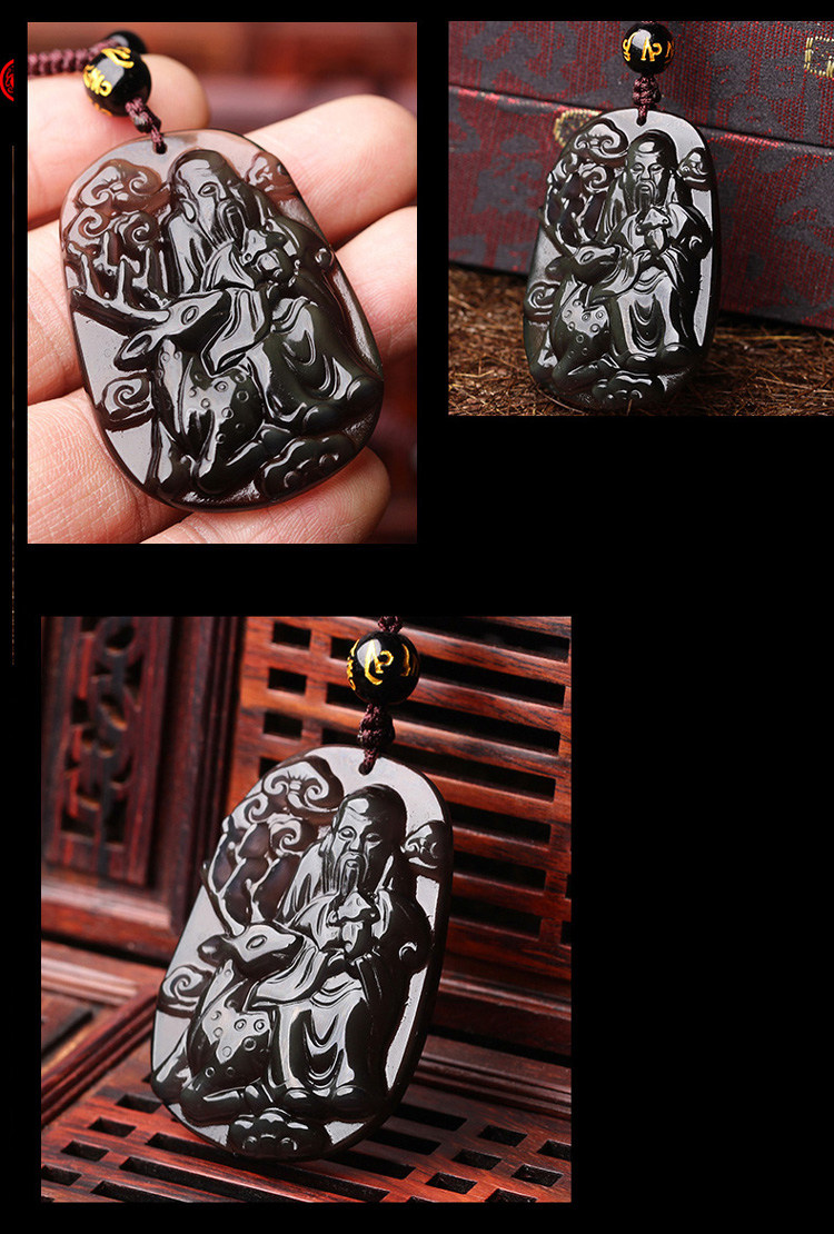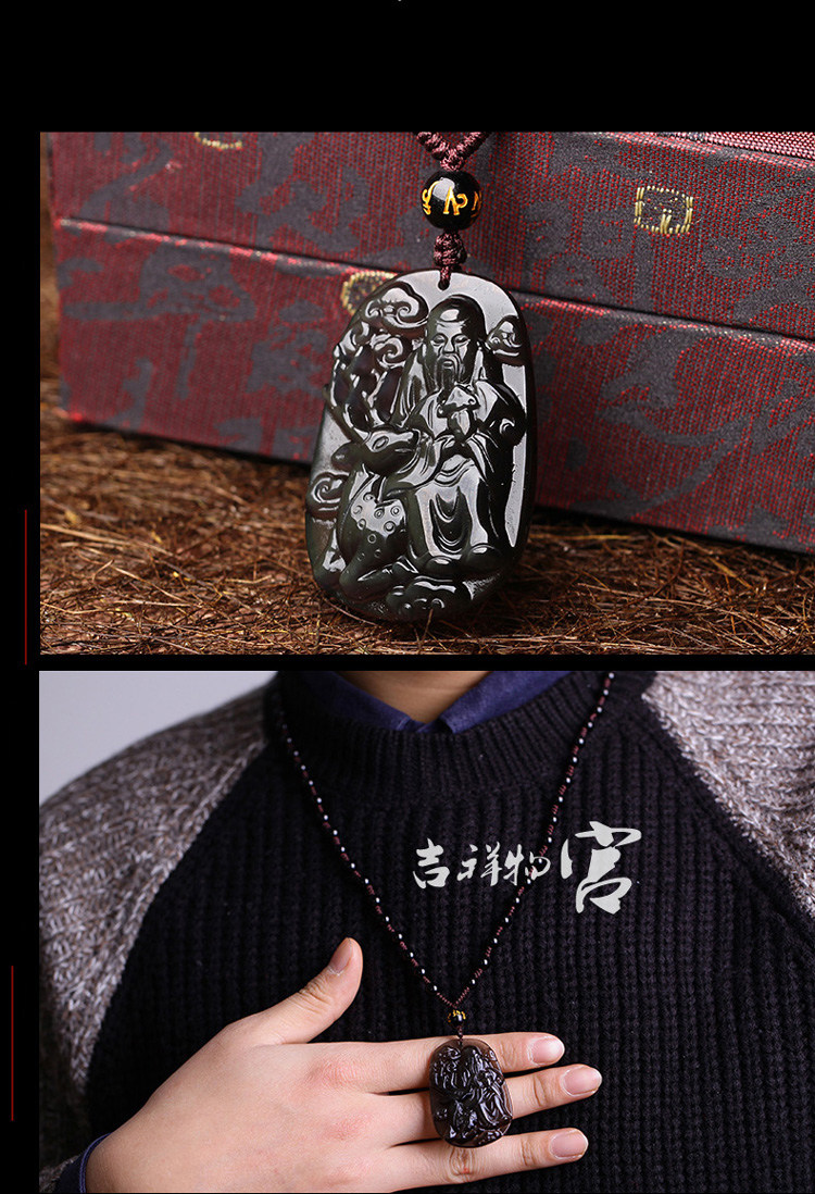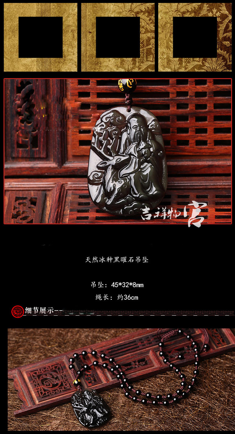 开光 2017年生肖属鸡本命年吊坠 福禄康宁冰种黑曜石项坠男女款