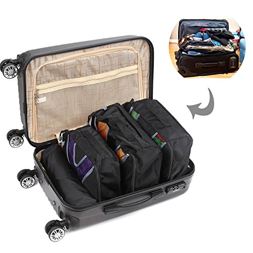 2. The four-piece dress pocket set in different sizes: extra large (17.3*12.6*3.9 inches ), large(13.8 * 12.6 * 3.9 inches) medium (13.8 * 10.6* 3.9 inches) and small (11 * 6.7 * 3.9inces) Pack bags for the order in the suitcase quite useful and practical , especially if several people and even children from a suitcase live together.