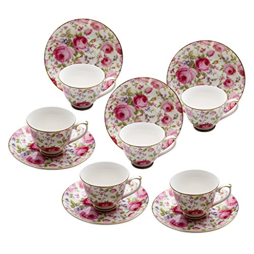 (Grace Teaware)/Kitchen Dining/Tableware/DIRECT FROM USA/Grace Teaware Fine Porcelain Espresso Cup and Saucer Set of 6, 3-Ounce (Pink Peony)