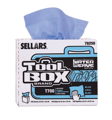 Sellars 78250 ToolBox T700 WaterWeave Polypropylene/Cellulose Interfold Wiper, 16-1/2" Length x 9-1/2" Width, Blue (8 Boxes of 100 Sheets)