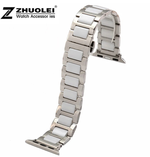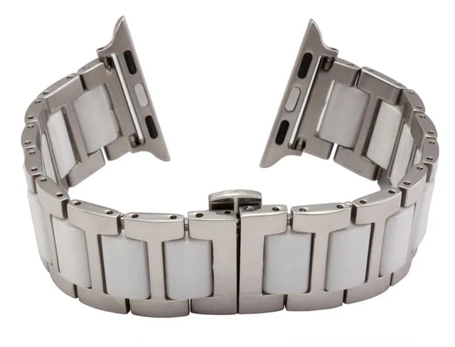 | [해외] 38 미리메터 화이트 세라믹 스테인레스 스틸 금속 스트랩 클래식 어댑터 버클 시계 밴드 애플 시계 iwatch 커넥터 어댑터 |