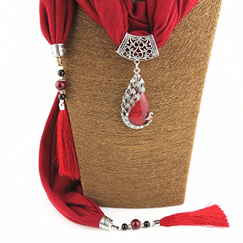 Sibalasi--Women Charm Polyester Scarf Necklace Decoration Bohemia Tassel Peacock Pendant Shawl?