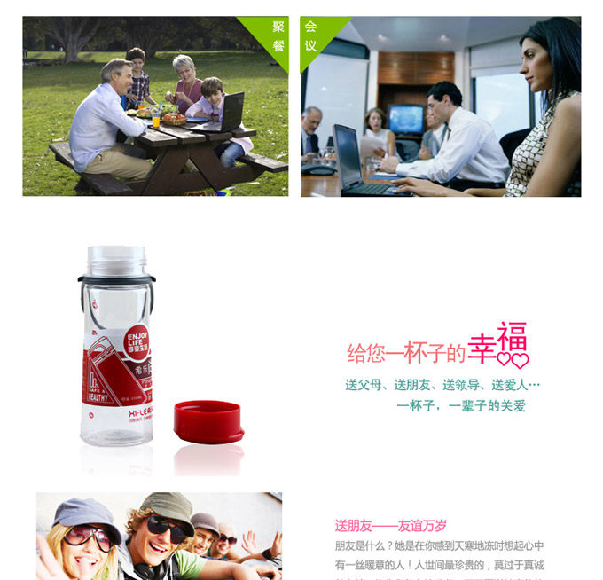 | Product Description | ?Features: high-quality materials, the use of plastic materials in food, an amorphous material is odorless, non-toxic transparent thermoplastic polymers, especially impact resistance and toughness, creep, product size and stability 2. can withstand liquid temperatures. -10 to +110 degrees Celsius 3. workmanship: high temperature and Cheng, of health and safety The advanced design: the popular appearance, fashion novel appearance 5. easy to carry: multi-series products for home, travel, office and other equipment ideal drinking water |