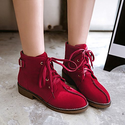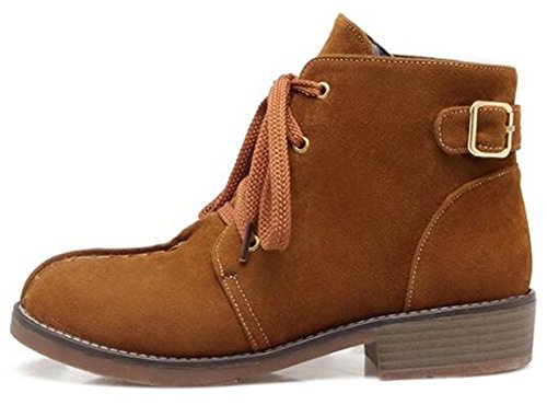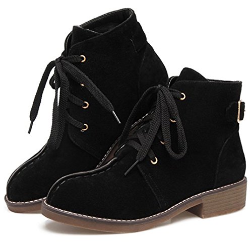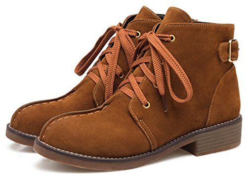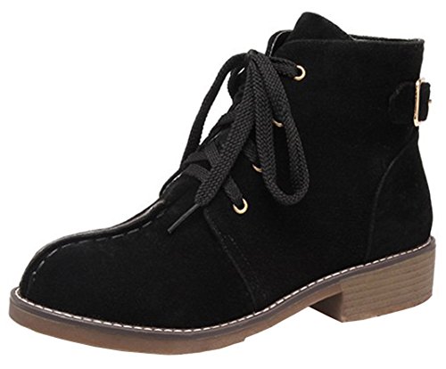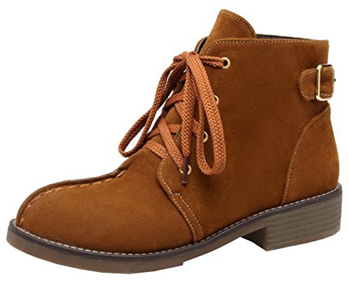 (Mofri)/Women's/Boots/DIRECT FROM USA/Mofri Women's Casual Buckle Belt Block Low Heel Ankle Booties Round Toe Lace up Faux Suede Shor...