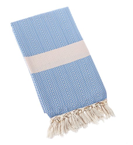 Eshma Mardini Natural Turkish Towel Peshtemal - 100% Natural Dyed Cotton - for Beach Spa Bath Swimming Pool Hammam Sauna Yoga Pilates Fitness Gym Picnic Blanket - ( Light Blue )