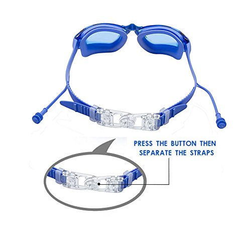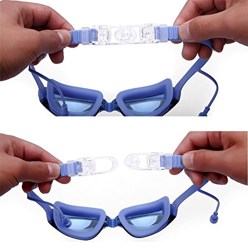 PRAGMATIC ELEMENTS: The swim goggles’silicone straps are designed with Easy-Fit Clips to adjust the length to your own head shape, Quick Release Buckle for you to put on without any irritation, and also Bulge Stripe Pattern on the inner surface to avoid slipping. Just get the length right, buckle up and dive in!