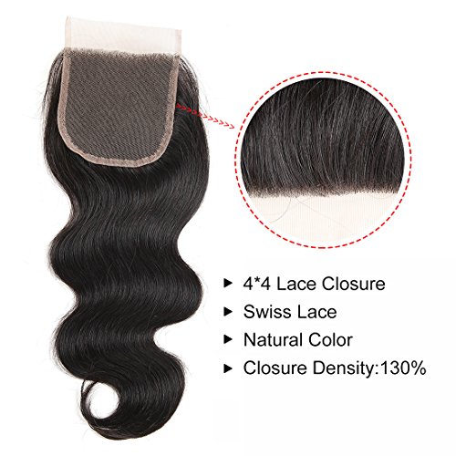 West Kiss Hair Body Wave Brazilian Virgin Human Hair Free Part 4x4 Lace Closure No Bleached Knots (18 inches free part)