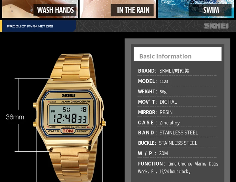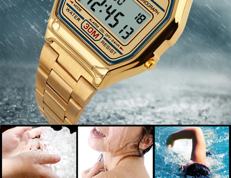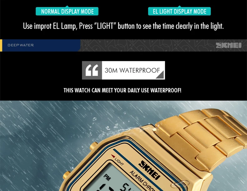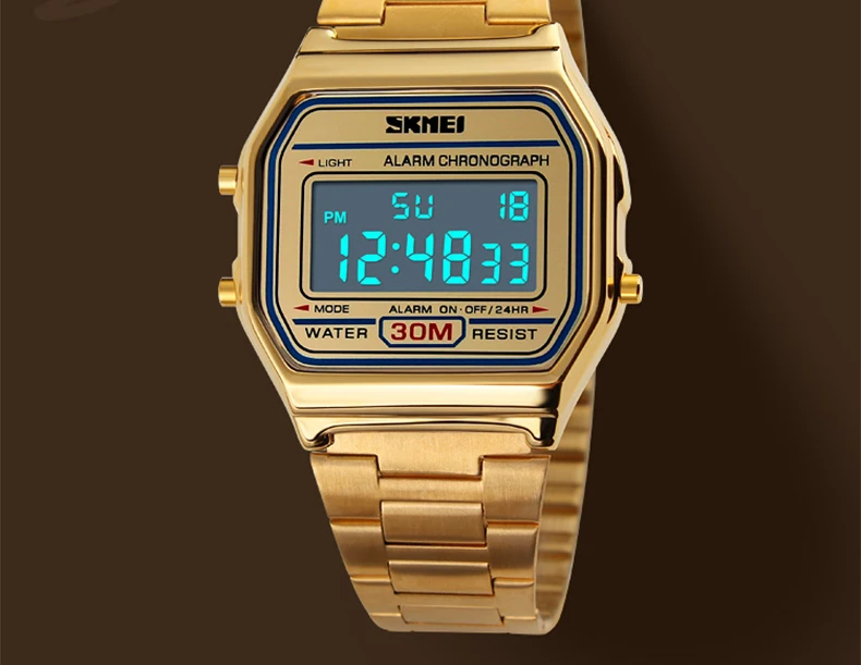 Feature:Complete Calendar,Shock Resistant,Week Display,Water Resistant,Back Light,Chronograph,LED display,Alarm