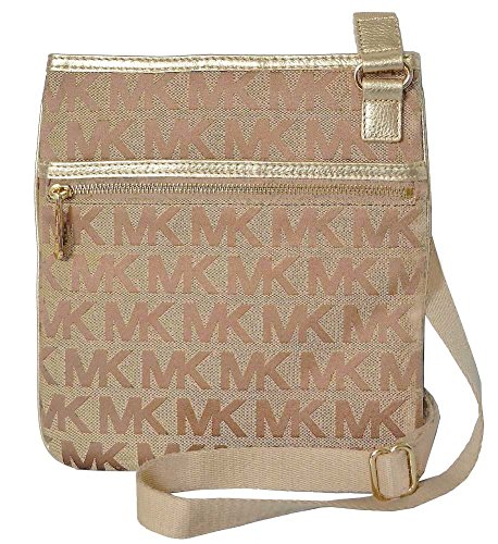 -. Feature : Authentic Michael Kors MK Signature Jacquard with Gold Leather Trim / Adjustable 25" Drop Crossbody Strap / Measures: 9.25" (W) x 10.25" (H) x 1.5" (D) / Zip Top Closure. Exterior Snap Closure Pocket & Zip Pocket / Michael Kors signature lining with one zippocket