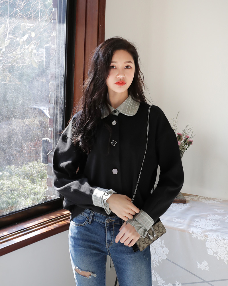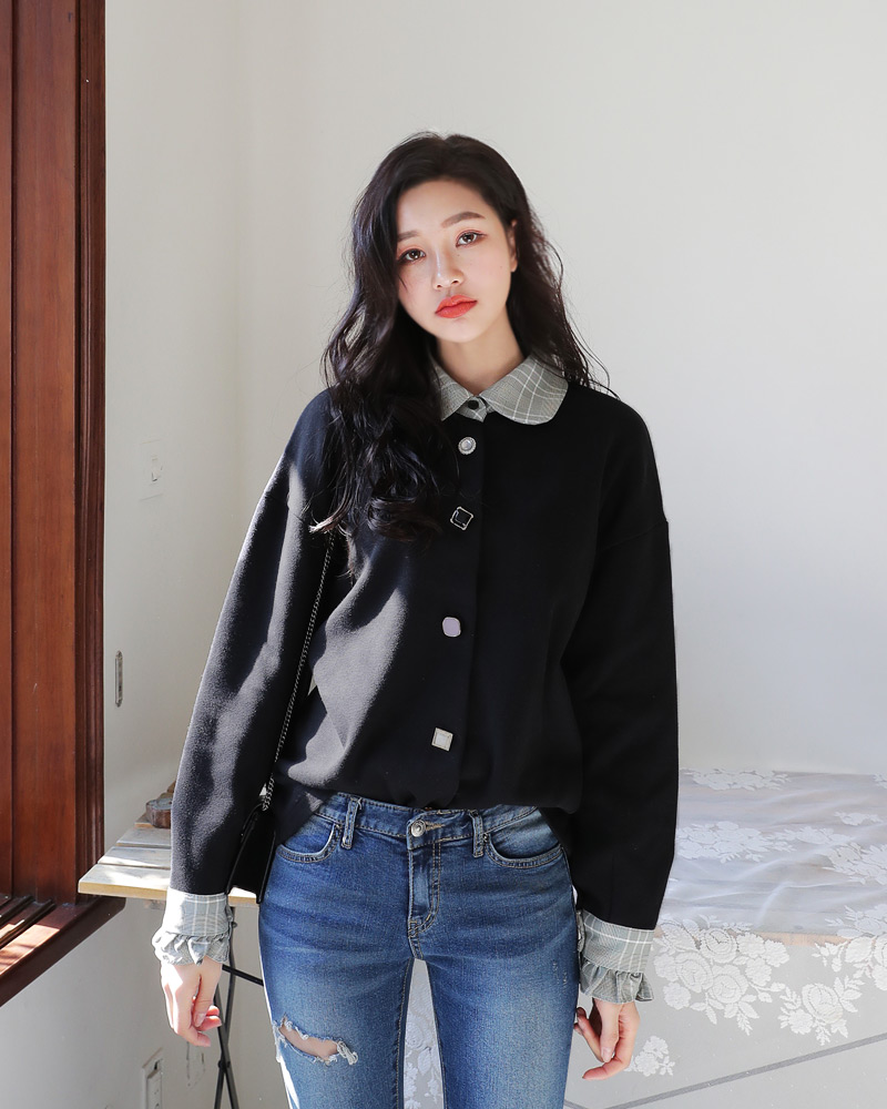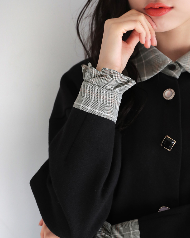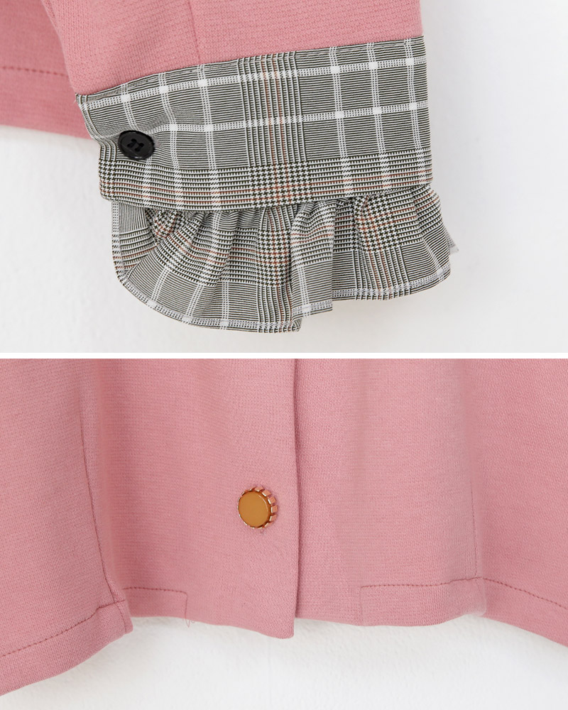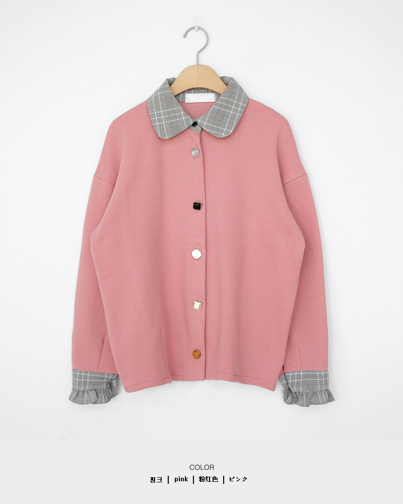 - トレンディなチェックパターンのカラーと袖・裾にルックの魅力をよりいたします