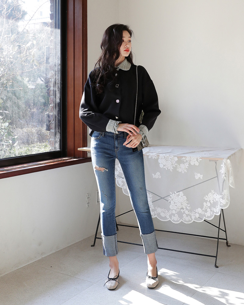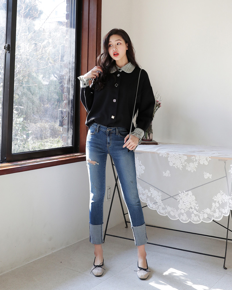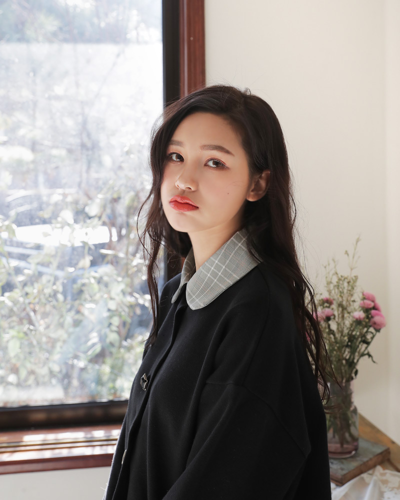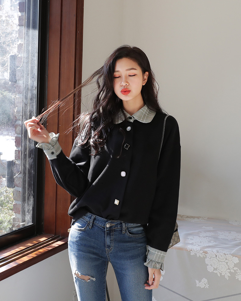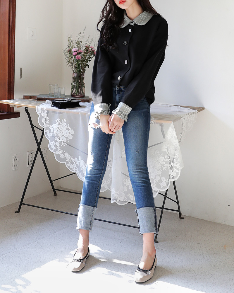 - トレンディなチェックパターンのカラーと袖・裾にルックの魅力をよりいたします