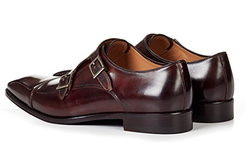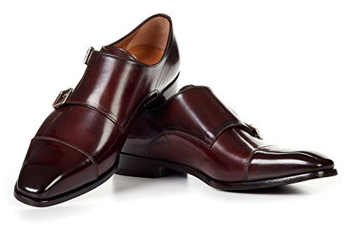 Binding : Apparel Product Description Double monk strap lovers rejoice. Our new double monk strap is built on an aggressive last with a cap toe to keep it in line. The perfect companion for any pair of designer jeans. Runs full size large (order full size down from regular US dress shoe size). For example, if you normally wear a size US 10 dress shoe, order a size 9Alternatively, order one and a half sizes below your Brannock device measurement. For example, if you measure a 10 on the Brannock, order a size 8.5Full-grain Italian calfskin leather upperMatching leather soleLeather liningBlake constructionHandmade in ItalyWe offer free international shipping and free US returns and exchanges. Need sizing help? Have a question? Click here to view our FAQs! 0