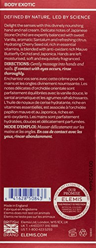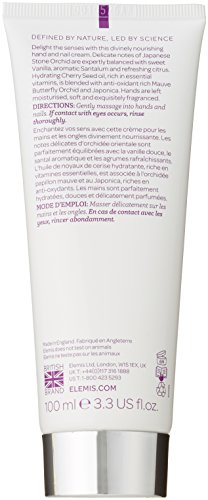 ReleaseDate : 2016-09-09 Studio : ELEMIS Publisher : ELEMIS Binding : Health and Beauty Product Description Delight the senses with this divinely nourishing hand and nail cream. Delicate notes of Japanese Stone Orchid are expertly balanced with sweet Vanilla, aromatic Santalum and refreshing Citrus. Hydrating Cherry Seed oil, rich in essential vitamins, is blended with anti-oxidant rich Mauve Butterfly Orchid and skin conditioning Japonica. Hands are left moisturized, soft and exquisitely fragranced. 0