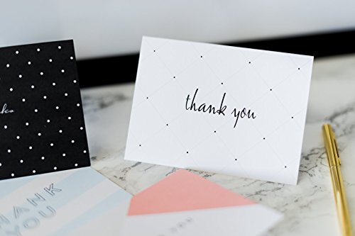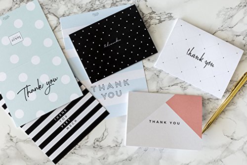 Say Thank You and show your love and respect for any occasion, with smart and beautiful thank you greeting cards! Whether for birthdays, graduations, anniversaries, baby showers, bridal showers or the need to express your gratitude and love for someone, send these thank you cards to share your thoughts and emotions.? 36 Premium Quality Thank You Cards, 6 Sophisticated Designs for countless occasions. Printed on heavy premium card stock, with a matte finish, uncoated and blank inside you can write your personal message without any ink bleed. This must have pack includes 36 assorted thank you cards which are made of finest quality, thick card stock that is durable with a luxury touch. The 6 modern designs are sophisticated and make these thank you cards the perfect choice for anniversaries, baby showers, weddings and any special occasion you might think of. The blank side offers you the chance to personalize the cards and express your feelings the way you like best. Also great for Friends, Family, Teachers, Collegues, Clients, Business, Professional Occasions, Office Celebrations, or Home use. Unmatched durability and elegance with 36 thick classic style envelopes Along with the beautiful thank you cards, you will receive high quality envelopes which are made of thick paper, assuring secure mailing which?are ideal for wedding gifts, graduation, birthdays, Christmas and any other festive occasions. Handy Storage Moreover, you will get a handy, clear storage box that will allow you to preserve your cards in excellent condition and neatly stored up until the next time you feel like making someone’s day with your kind words. Send your appreciation in style! 0 |