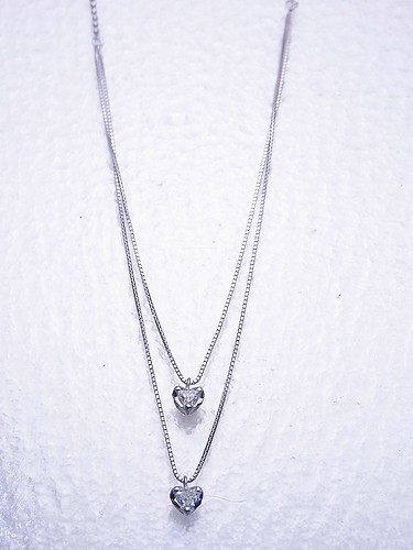■商品説明 18金ホワイトゴールドのハート2連ネックレスです。ハートのダイアモンドが2つついていて、かわいさ倍増です!!