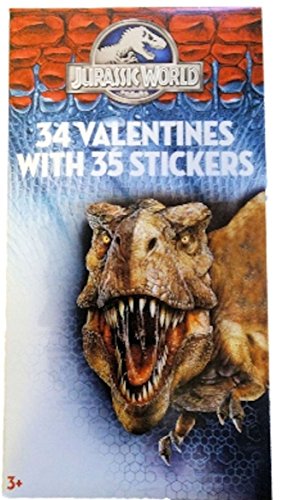 Jurassic World 34 Classroom Valentines Cards with Stickers