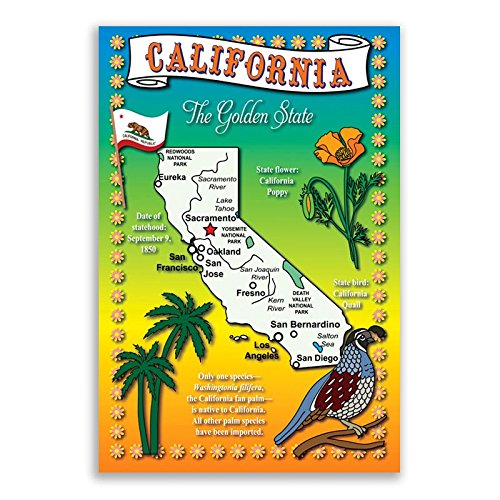 -. Title : CALIFORNIA STATE MAP postcard set of 20 identical postcards. Post cards with CA map and state symbols. Made in USA.