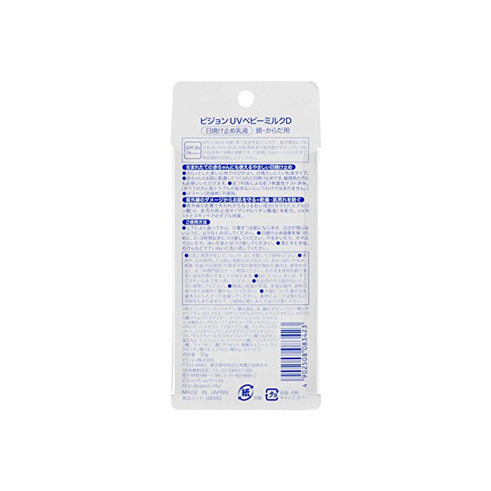 원본상품명: ピジョン UVベビ?ミルク ウォ?タ?プル?フ SPF35 PA+++ 30g
