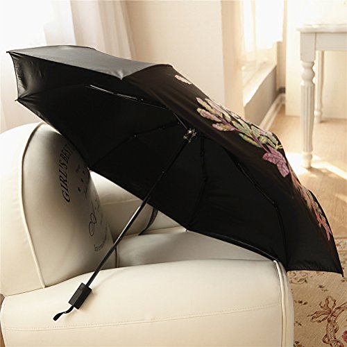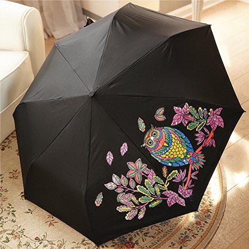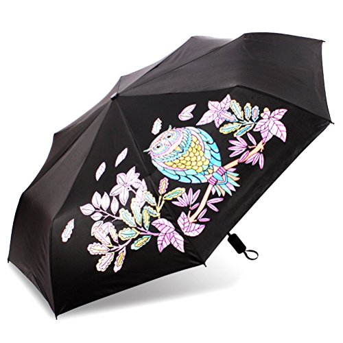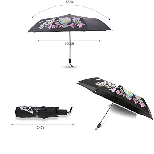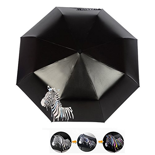-. Feature : STRONG WATERPROOF: Amazing waterproof ability. The surface of this kind of umbrella is made of speacil fiber material of ultra-high density, heaving passed the waterproof Test level 5 (the highest level) The drops will flip away when the rain falls. It only needs you to shake gently after closing the umbrella, then all the drops will gone. / AMAZING COLOR CHANGING: The color the umbrella's pattern is white before it was touched water. It will change the color from white to colorful. / COMFORTABLE AND PORTABLE: This Small Umbrella Folds Into A Compact 0f 24cm and weight 280g- Making It Easy To Tuck Into A Backpack, Case Or Tote. / EASY CARRY: The Handle made of Slip-Resistant Rubberized has Grind Arenaceous Touch, and is designed according to Human Engineering which can Provides A Comfortable Firm Grip Without Fear Of Slippage In any Wet And Rainy Conditions. / 8-RIB BLACK STEEL FRAME - Sturdy and Durable, can take the pressure of the elements and time