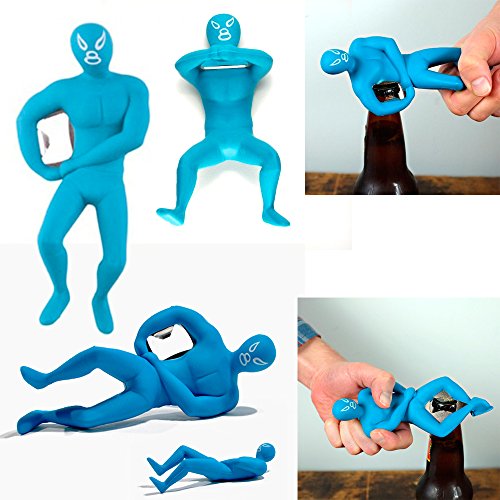 -. Title : Luchador Bottle Opener Beer Cap Metal Ring Rare Novelty Gift In Blue Kikkerland