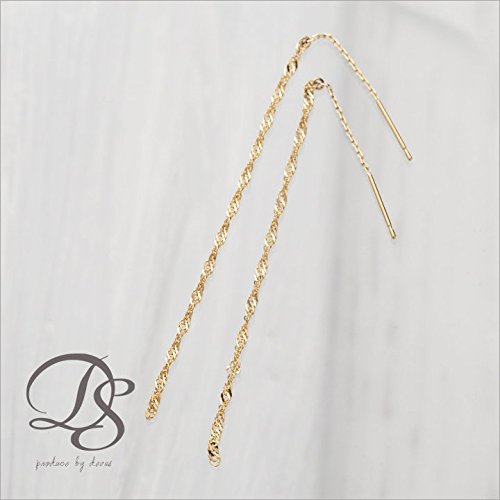 -. Title : K18ゴールド アメリカン ピアス スクリューチェーン 「ねじれデザインが揺れて絶妙に輝く」