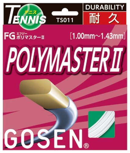 Studio : Gosen Publisher : Gosen Binding : Misc. Product Description For extreme spin and durability the innovative Gosen Polymaster II 16 features the unique flat shape which is significantly wider than it measures in height The copolyester construction allows the string to offer both durability as well as additional elasticity for greater comfort and energy transfer The result is that Polymaster II combines serious spin generation and ball speed allowing players to dictate play with heavy groundstrokes while the softer feel from the construction does provide enough feel for the occasional trip into the net The string measures 143mm in width but only 100mm in height so the essentially 4 sided shape is designed primarily for heavy spin baseline players who want durability and extra kick off the ground Gosen Polymaster II is slightly thinner than Polymaster I which shares the same construction and shape giving it even greater spin generation and a more lively feelConstruction Monofilament CoPolyesterColor WhiteGauge 143mm x 100mm 0